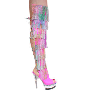 0975: Thigh High,7 Row Rainbow Rhinestone Fringe 6inch platform Boot,