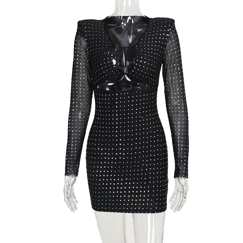 2024 Club Bodycon Clothes Hollow Out Sexy Corset Mini Dress Sexy Dresses For Women Sequined Bodycon Slim Streetwear Party Dress