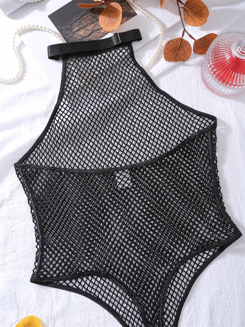 Erotic Bodysuit Fishnet Transparent Mesh Body Sensual See Through Sissy Crotch Open Tops Sexy Lingerie Women One-piece Jumpsuit